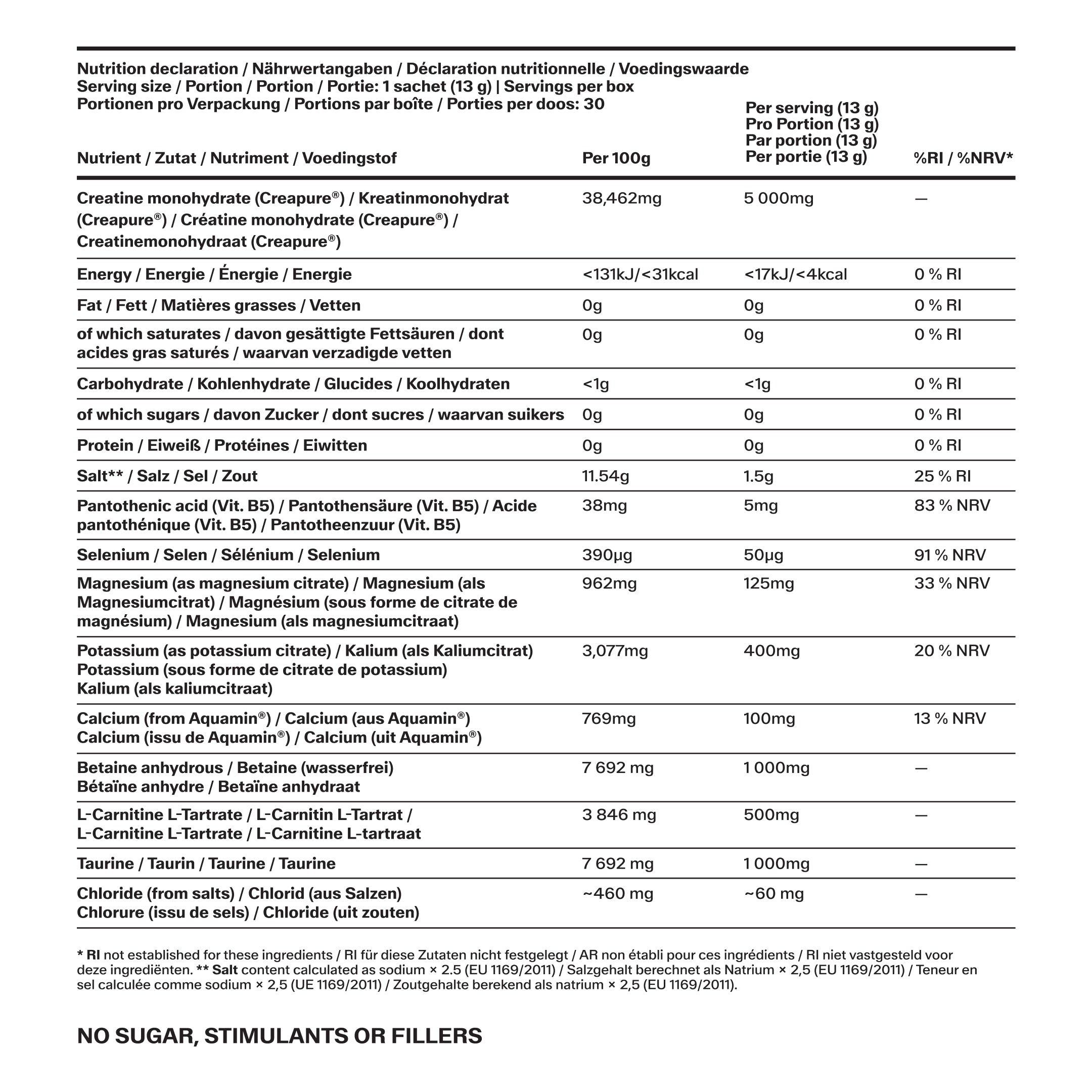Our science-backed electrolyte complex supports hydration and normal electrolyte balance. Sodium and chloride contribute to the maintenance of fluid balance, while potassium, magnesium, and calcium contribute to normal muscle function and nervous system function. Together, these essential minerals support the body’s physiological demands during exercise and daily activity.