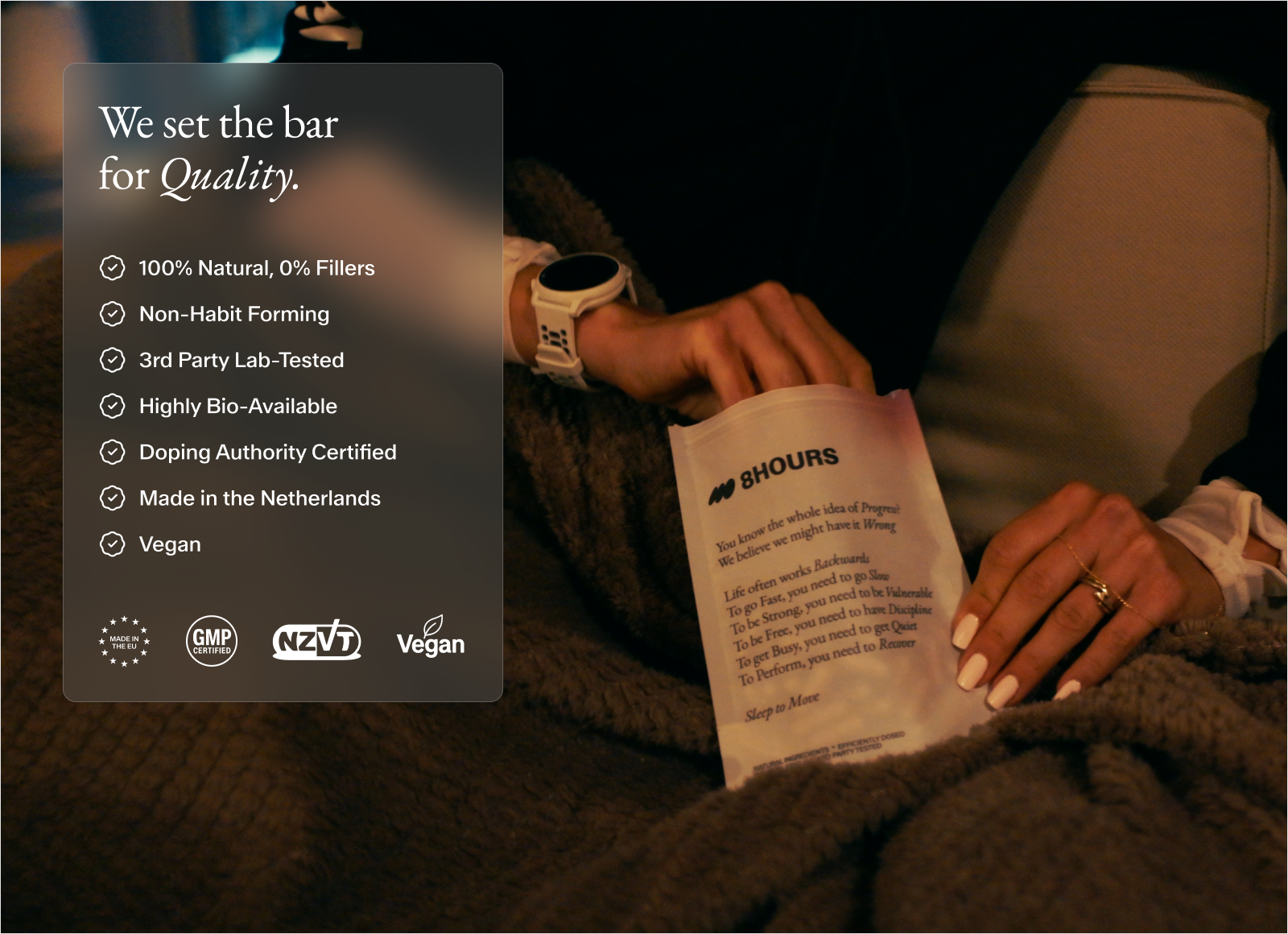 Congratulations, you have taken a step toward supporting your overall well-being and sleep routine with 8hours.