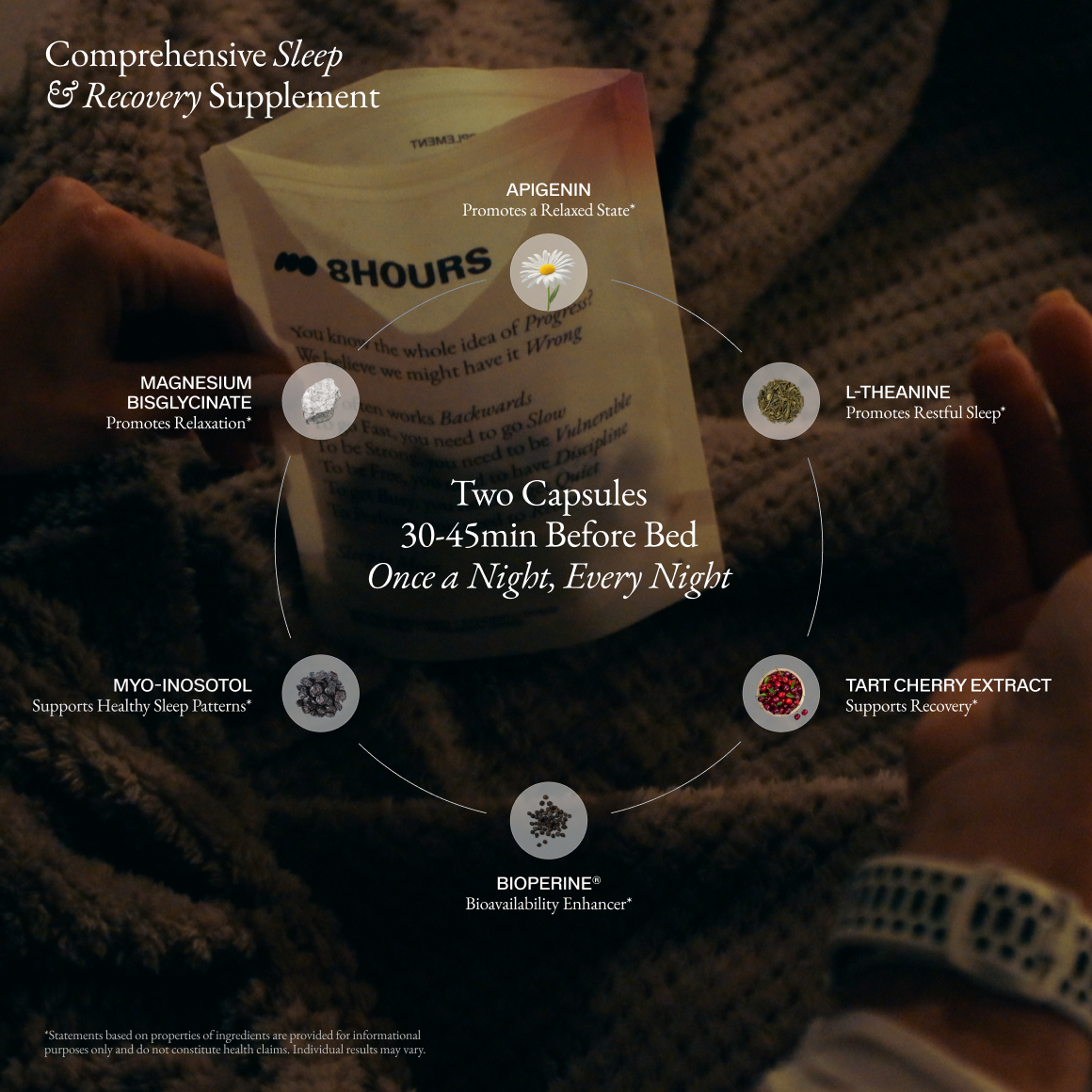 As you continue, your body integrates 8hours' compounds, supporting your recovery from daily activities.